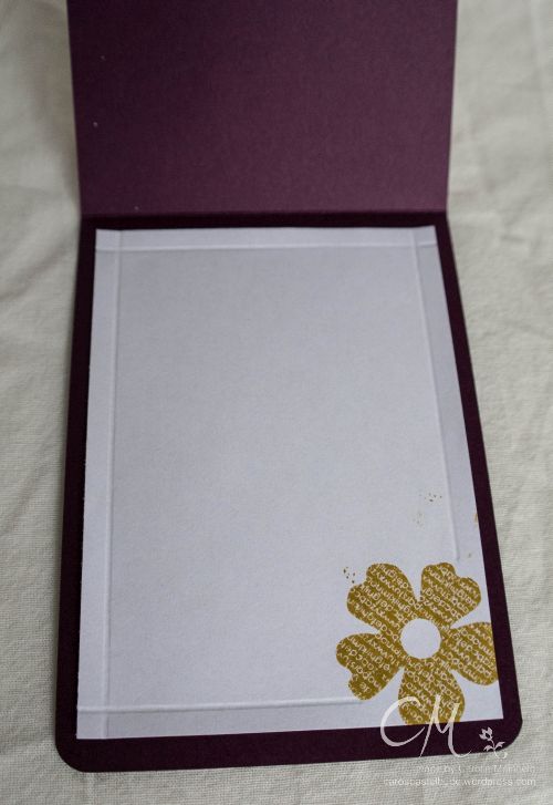 Ich habe dazu eine Karte in den neuen InColors Brombeermouse und Honiggelb gemacht. Das Designerpapier im Hintergrund stammt aus dem Designerpapier-Block Mondschein. Die Blüten sind mit Motiven aus dem Stempelset Flower Shop entstanden. Dieses Set hat es zum Glück auch in den neuen Jahreskatalog 2014-2015 geschafft und ist erhältlich mit der dazu passenden Stanze Stiefmütterchen.