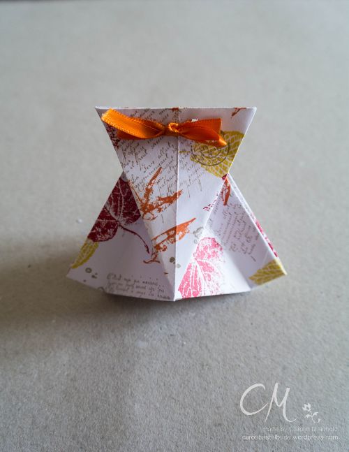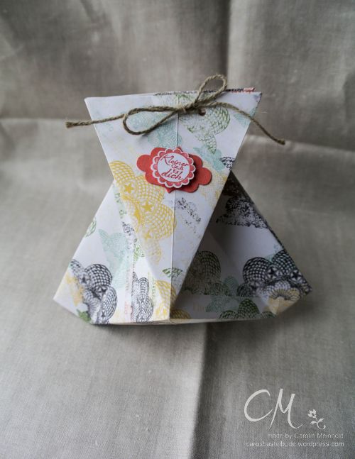 … schon wieder eine Origami-Verpackung. Dabei gibt es noch so viele andere tolle Origamisachen. Nun ja, in dieser Woche haben es mir die Boxen angetan. Auch diese hier ist richtig toll.