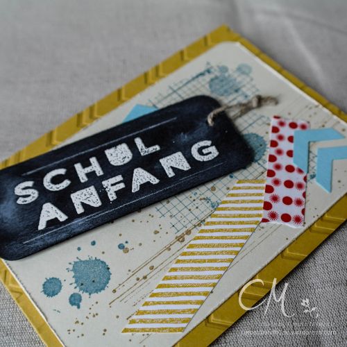 Die Inspiration dazu habe ich wieder einmal im World Wide Web entdeckt – bei Anke von Leipzig stempelt. Anke hat ein Album zum Schulanfang gemacht, dessen Cover mich total angesprochen hat. Ich habe Ihre Gestaltung etwas abgewandelt und daraus diese Grußkarte gemacht.