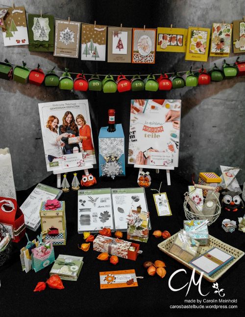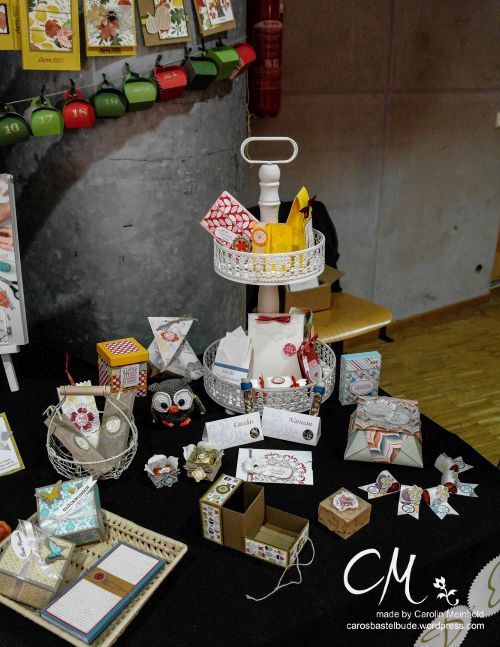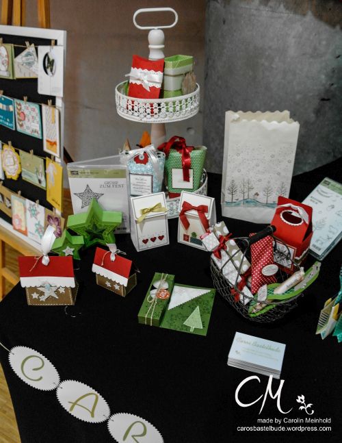 Zunächst haben mein Schatz und ich am Samstag den Stand aufgebaut und eingerichtet. Auch das war gar nicht so einfach. Wo stellt man was wie hin und wie bringt man die ganzen Sachen unter? Von links nach rechts haben wir mit einer Weihnachtsecke angefangen, über Herbst bis hin zu etwas allgemeineren Sachen. Auch einige Hochzeitsbasteleien hatte ich dabei. Am Ende waren wir dann doch ganz zu frieden mit dem Ergebnis. Was meint Ihr?