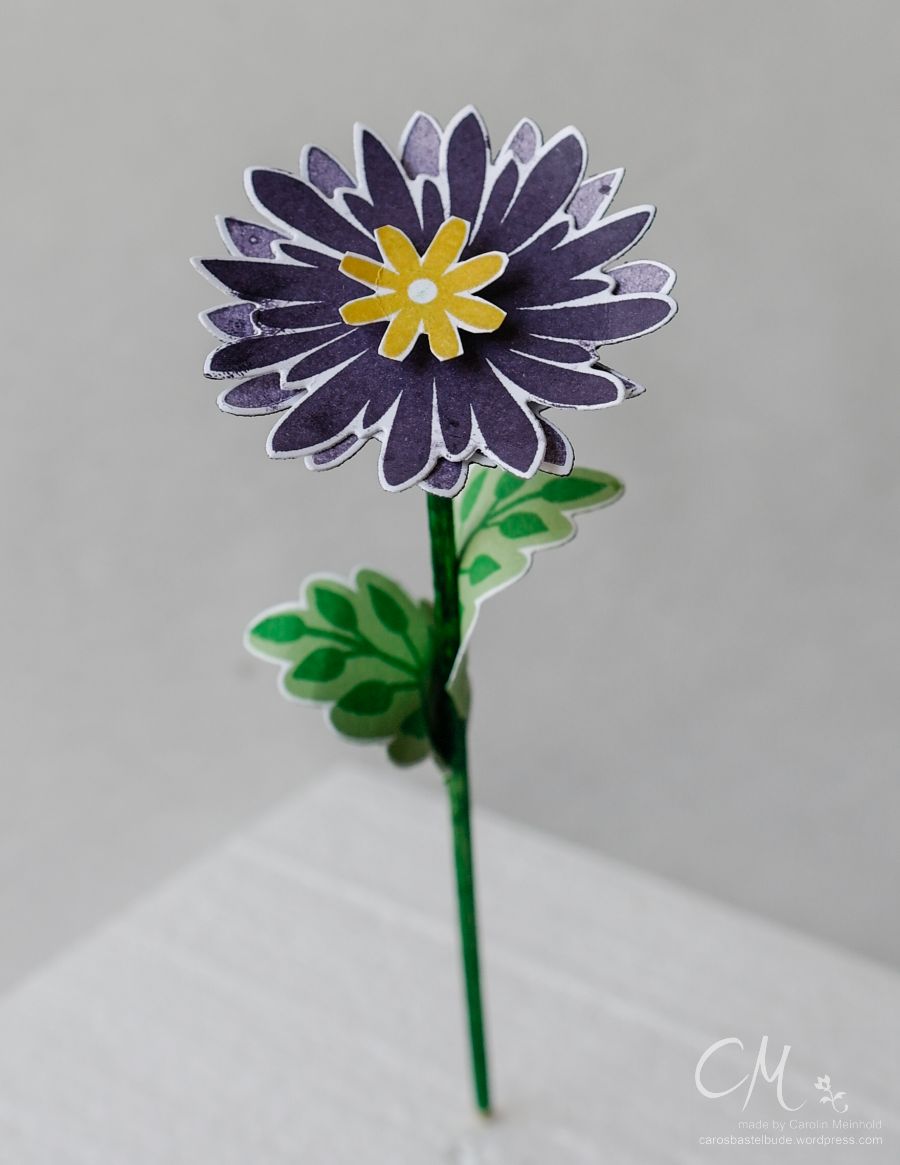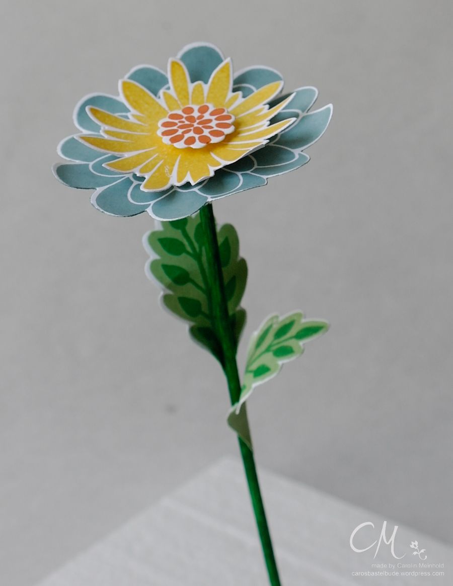 Die Blätter am Stiel wollte ich zunächst mit dem Tombow Kleber befestigen. Das hat aber nicht so gut funktioniert. So habe ich Glue Dots verwendet und schon blieben die Blätter da, wo sie sein sollten.