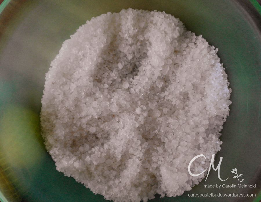 Und da ich sowieso schon einmal in der Wellness-Ecke unterwegs war, habe ich auch gleich noch Badezusatz gemacht. Die Rezeptur dafür habe ich bei Miss Lila gefunden.