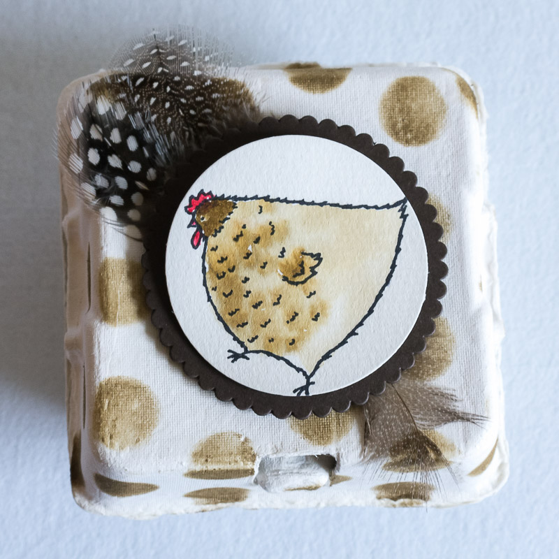 [/cs_text][x_custom_headline level=”h2″ looks_like=”h6″ accent=”false”]Die Henne auf dem Deckel[/x_custom_headline][cs_text class=”cs-ta-justify”]Für das Element auf dem Deckel habe ich zunächst zwei Kreise mit den Framelits Lagenweise Kreise ausgestanzt – einen aus Farbkarton in Espresso und einen aus Aquarellpapier.